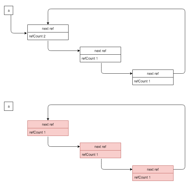 단어 뜻 그대로, 메모리들이 서로 순환하며 참조한다는 것인데,