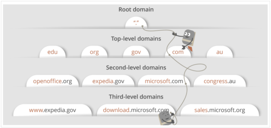 아래 그림을 보면 DNS Server는 계층화되어 있기 때문에