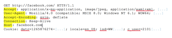 아래 사진은 GET Request의 샘플 본이며, 노란색 부분이 Header이다.