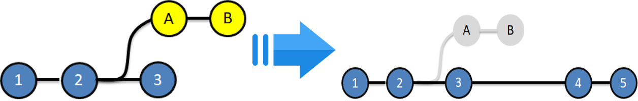 즉, 이 master의 '4'라는 commit은 '1', '2', '3', 'A', 'B'의 commit 정보들을 모두 담고 있다.